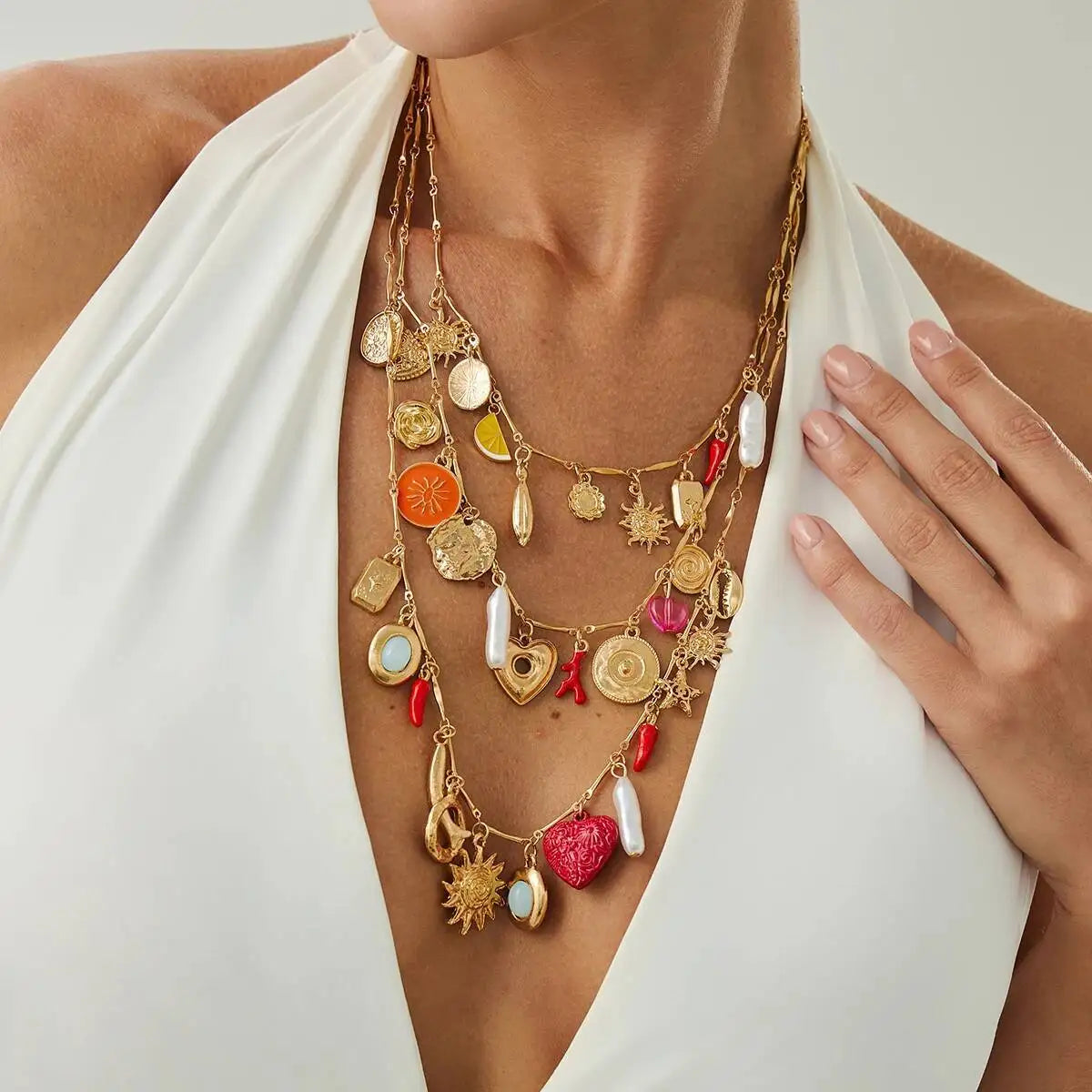 3-in-1 layered necklace set 🌞💖✨