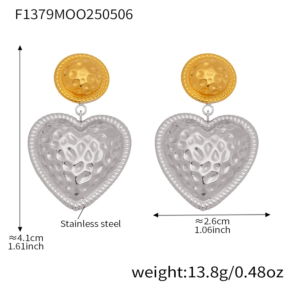 Make a statement with the Lucia Gole Two-Tone Hammered Heart Drop Earrings. Featuring a textured gold stud paired with a bold silver hammered heart, these sculptural earrings blend romance with modern edge. Lightweight yet eye-catching, they’re designed to elevate both everyday looks and evening styling.