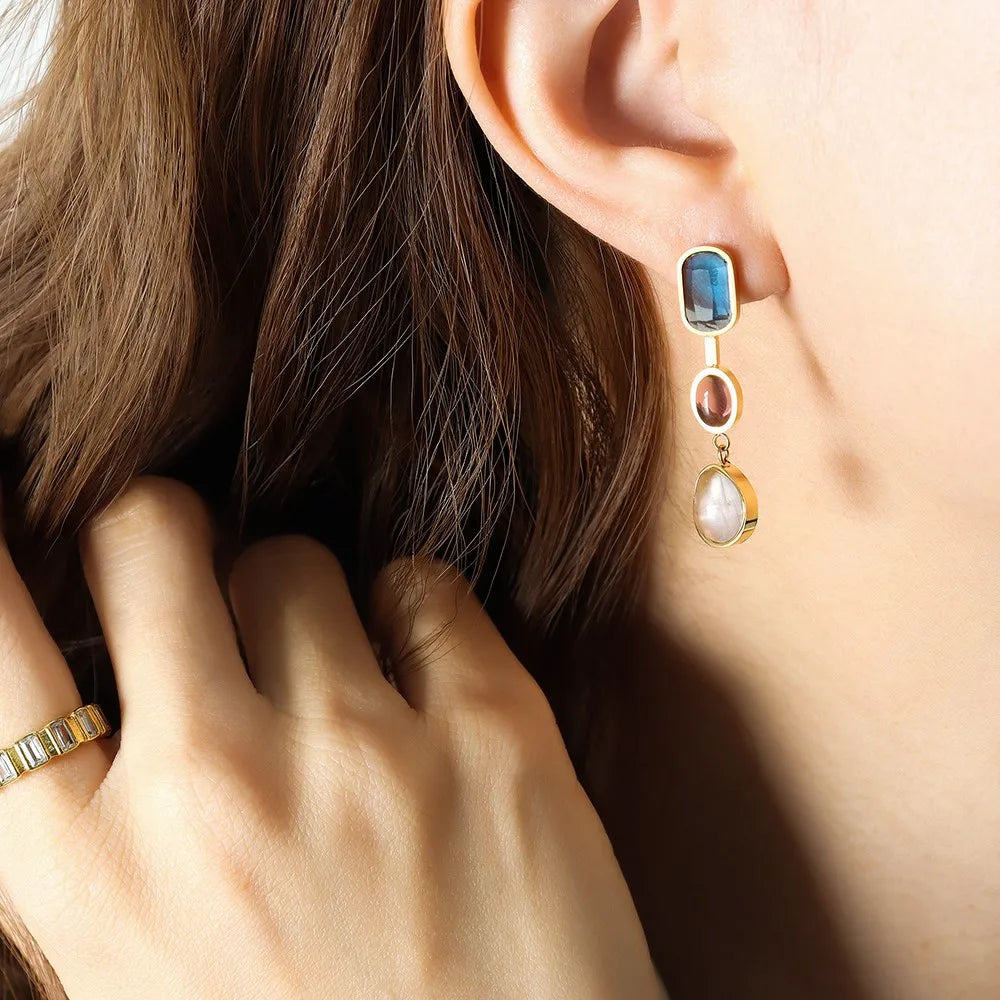Lucia Gole - Multi Shape And Color Glass Stone Crystal Dangle Earrings