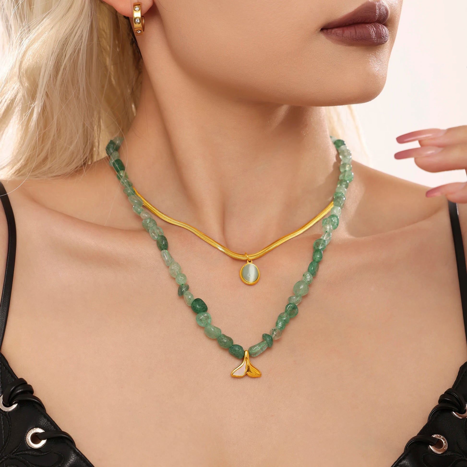 Elevate your look with this elegant green aventurine beaded necklace, featuring a minimalist gold-tone pendant for a refined layered style. Crafted with natural stone beads and a sleek gold chain, this necklace blends earthy charm with modern sophistication—perfect for everyday wear, gifting, or effortless layering with other jewelry pieces. Ideal for lovers of natural gemstone and minimalist gold jewelry.